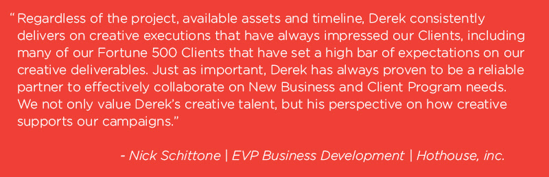 With 20+ years of both agency and client-side experience, I have been a Creative Director (advertising, interactive, professional sports), Art Director (advertising/design, monthly magazine), Designer, Illustrator and artist. I have won dozens of industry awards including National Gold ADDY for corporate website and have also been featured in several industry publications including feature chapters in two books.