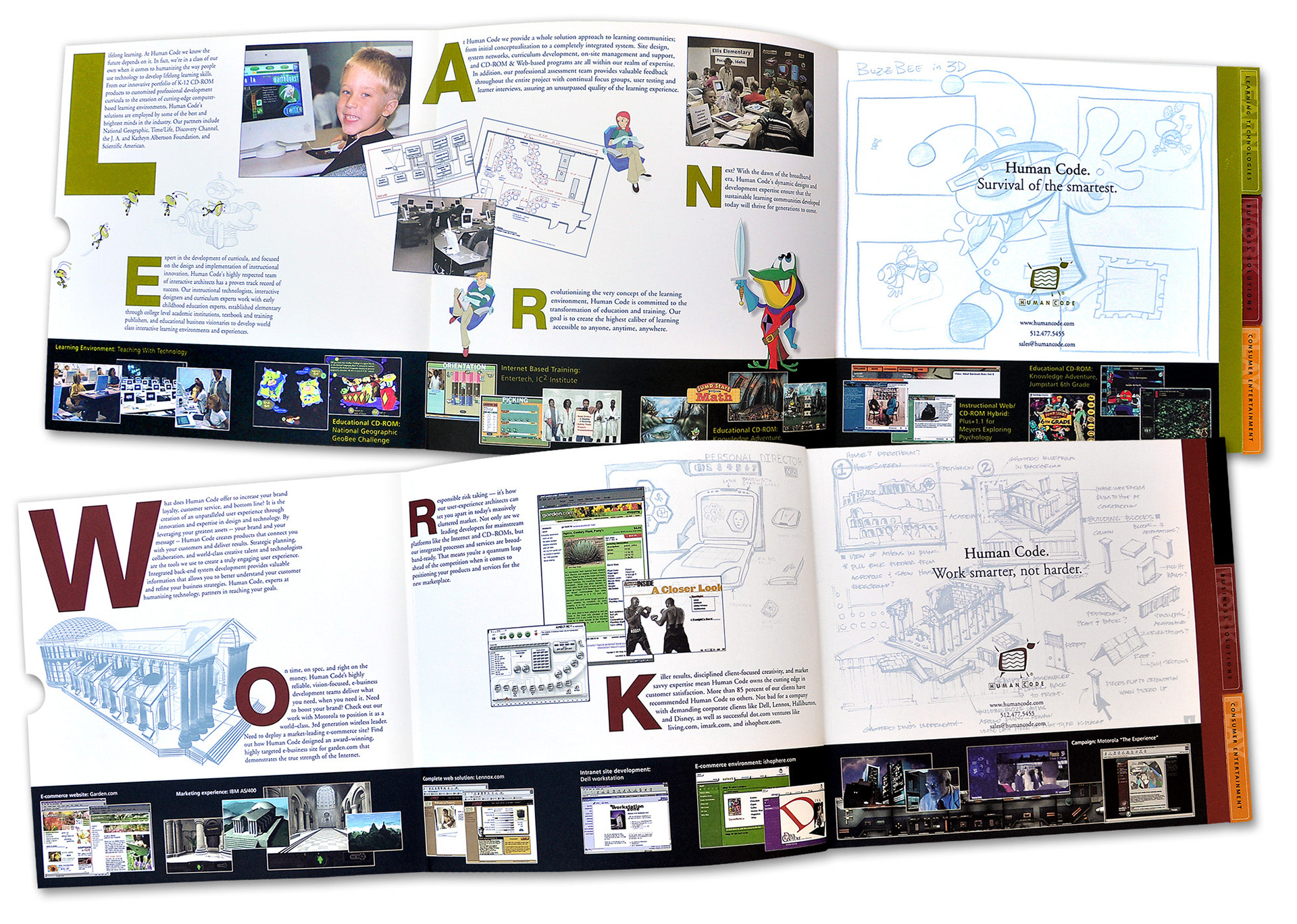 Brochure, website design and trade show ad for Human Code, Inc.